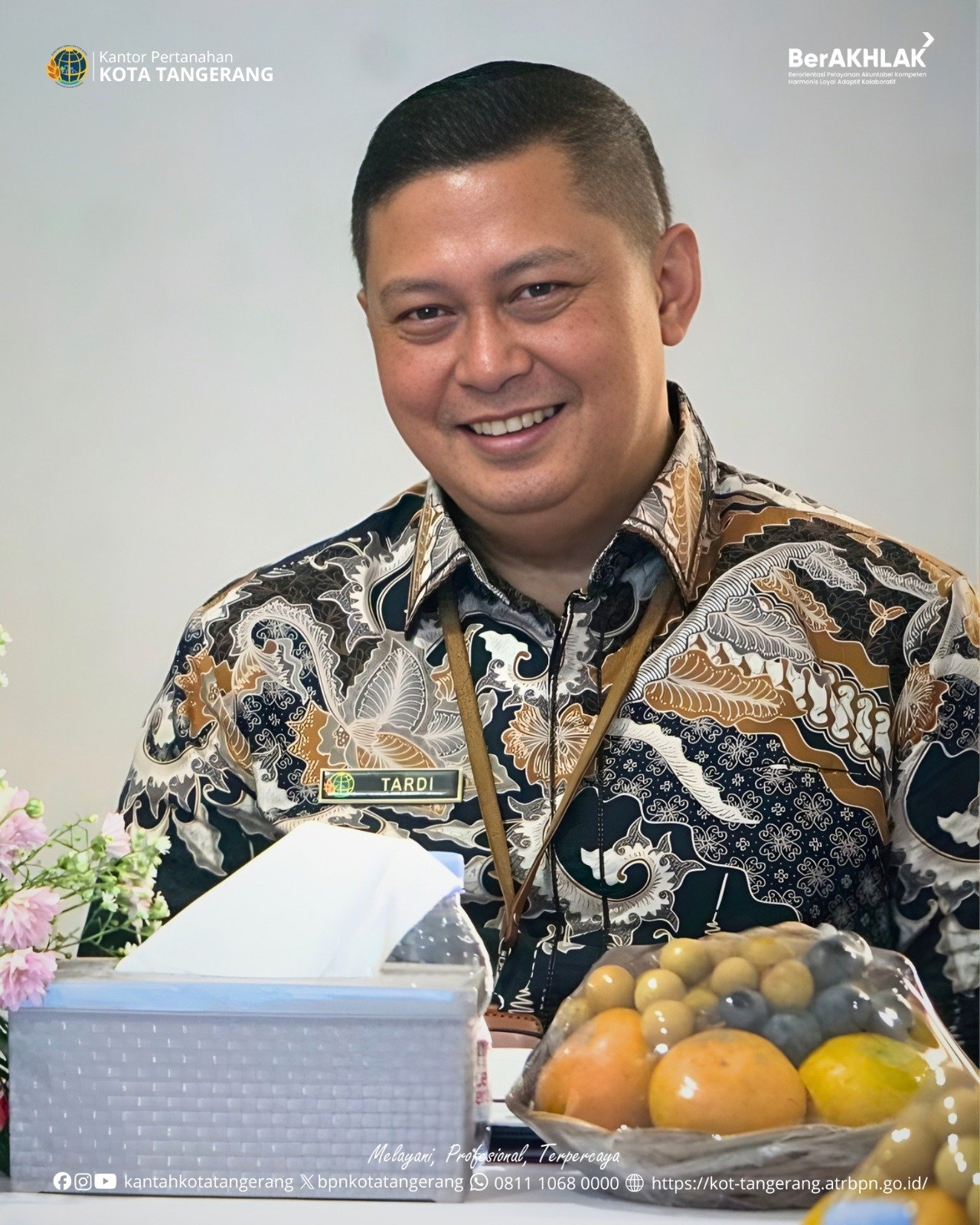 Kedatangan rombongan disambut hangat oleh Kepala Kantor Pertanahan Kota Tangerang, Tardi, beserta seluruh pejabat struktural.